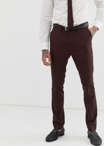 Neben dem Körperbau müssen Status, Alter und Lebensstil berücksichtigt werden. Wenn Sie sich in engen Hosen unwohl fühlen, nicht gerne auf sich aufmerksam machen, sich viel bewegen, wählen Sie besser lockerere Varianten. Zu schmale Styles sind grundsätzlich nicht für reife, respektable Männer geeignet. Dies ist ein Jugendstil, der Dissonanzen in das Statusbild bringt.