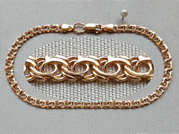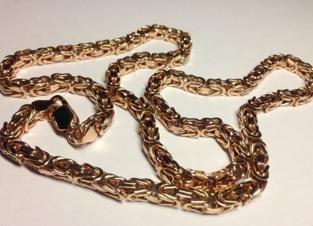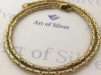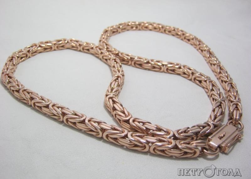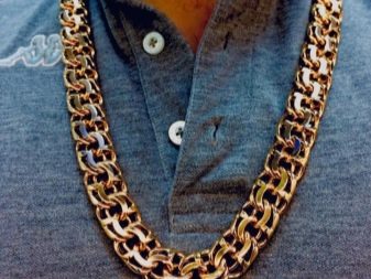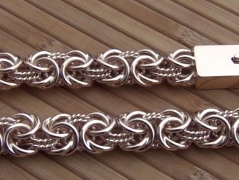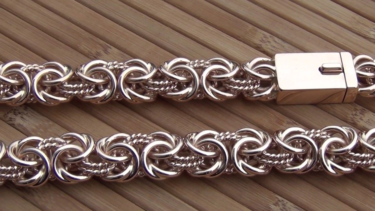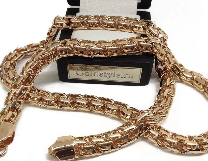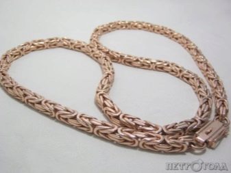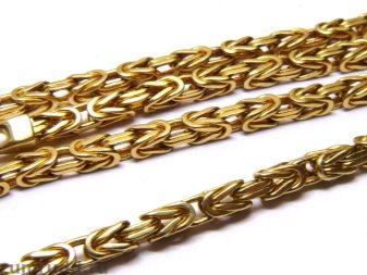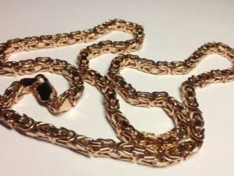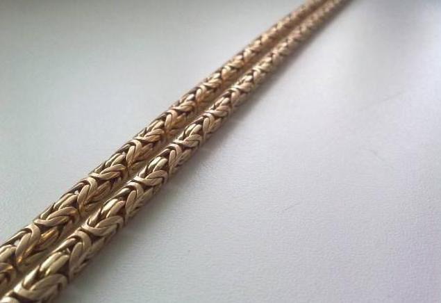 - "Byzanz". Dies ist die originellste und skurrilste Art. Die Glieder können entweder rund oder rechteckig sein, sogar in Form einer Acht. Das Stricken selbst für jeden Meister wird in seiner eigenen Reihenfolge durchgeführt. Auf diese Weise gewebte Ketten benötigen keine Anhänger oder Anhänger.