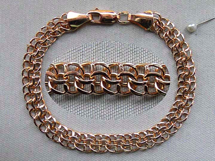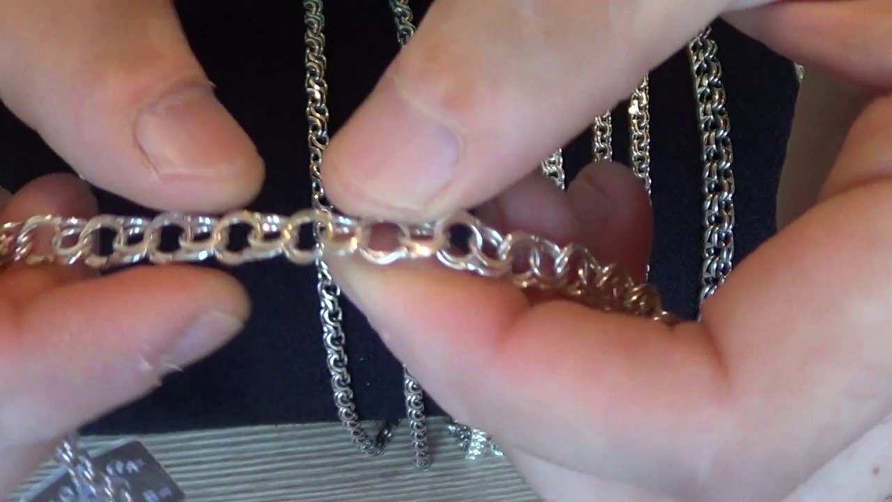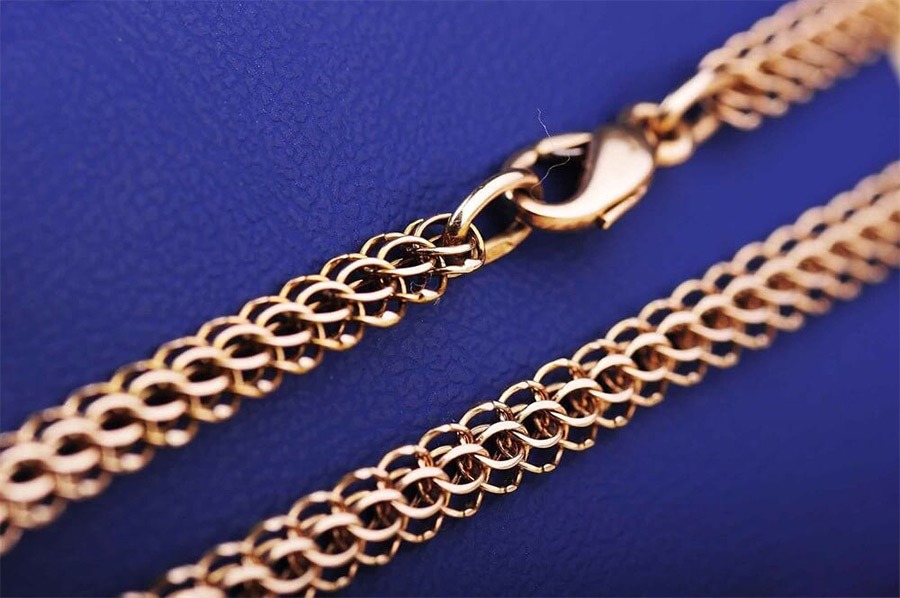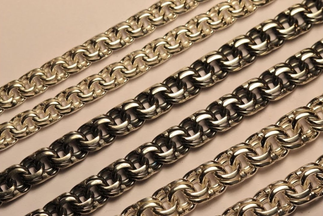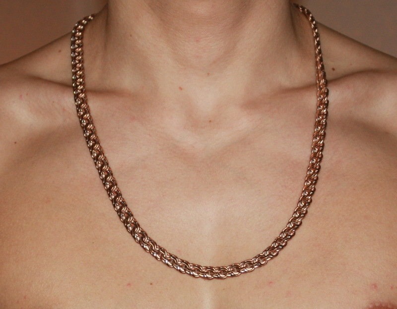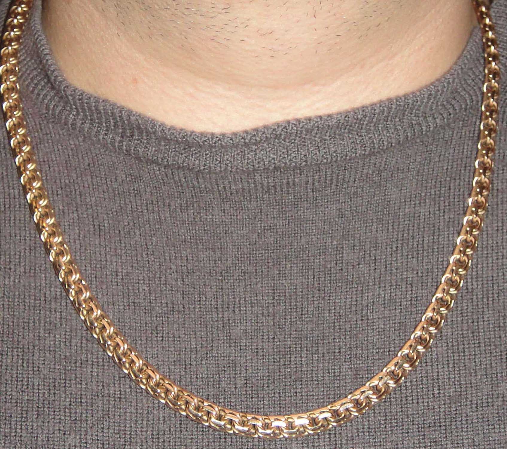 - "Byzanz". Dies ist die originellste und skurrilste Art. Die Glieder können entweder rund oder rechteckig sein, sogar in Form einer Acht. Das Stricken selbst für jeden Meister wird in seiner eigenen Reihenfolge durchgeführt. Auf diese Weise gewebte Ketten benötigen keine Anhänger oder Anhänger.