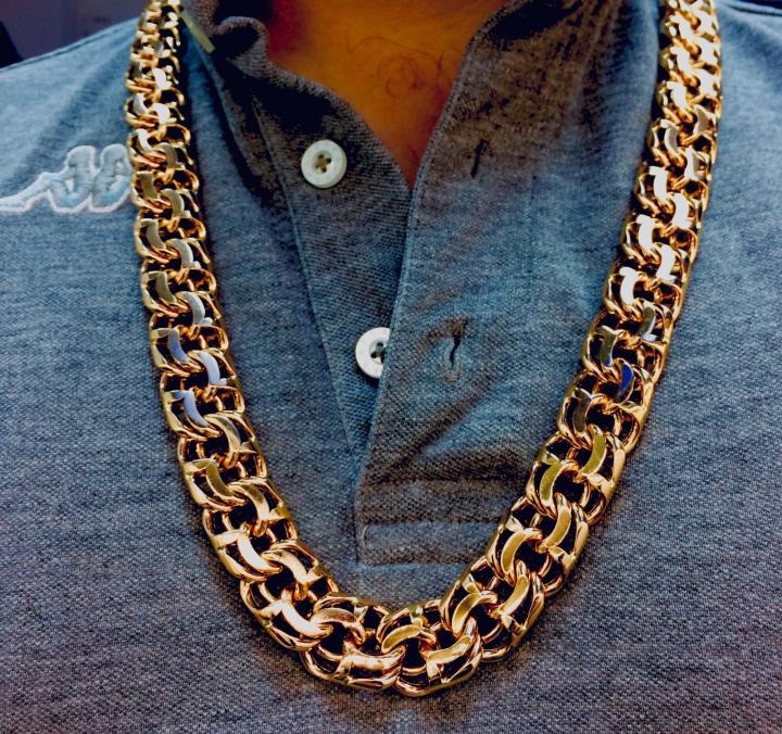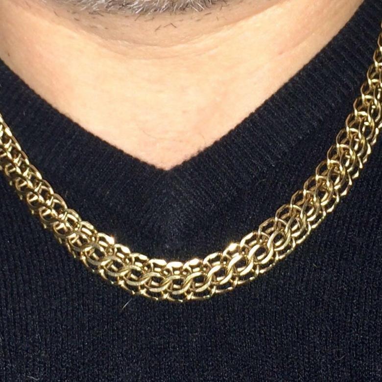 Diese Art des Webens von Herrengoldketten, wie Bismarck, ist leicht unterscheidbar und erkennbar. Schmuck mit diesem Look war in den 90er Jahren des letzten Jahrhunderts in Russland beliebt.... Aufgrund seines Aussehens war es eine Art Abzeichen für einige Lebensbereiche.