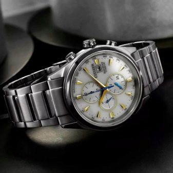 - Seiko SSB331P1. Ein klassisches japanisches Modell mit sportlichem Flair. Ein Metallarmband aus Edelstahl in Kombination mit einem stoßfesten Gehäuse ist alltagstauglich – sowohl für Sportler als auch für alle, die Wert auf Funktionalität bei Accessoires legen. Das Vorhandensein von Mineralglas minimiert die Anzahl von Kratzern und das Risiko von Absplitterungen, was die Lebensdauer des Produkts sicherlich verlängert.