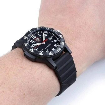 Luminox hat drei Hauptserien: Meer, Luft und Land. Die Sea-Serie ist dem Tauchen gewidmet. Die oben erwähnte Luminox Light-Technologie macht das Zifferblatt auch unter Wasser gut sichtbar. Die Uhren dieser Serie sind wasserdicht von 200 bis 500 Metern. Die Marke hat sich mit der US Air Force zusammengetan, um die Air-Serie zu produzieren. Eine der Kollektionen dieser Serie - F-117 Nighthawk 3400 wurde in ihrem Auftrag erstellt. Diese Uhr hat ein schwarzes Edelstahlgehäuse, ist bis 200 Meter wasserdicht und verfügt über eine beleuchtete Nachtsichtlampe, die bis zu 25 Jahre hält. Luminox Land-Serie - das Ergebnis der Zusammenarbeit mit dem Militär, Spezialeinheiten, Strafverfolgungsbehörden und anderen Fachleuten. Diese Serie wird durch Uhren repräsentiert REKON.