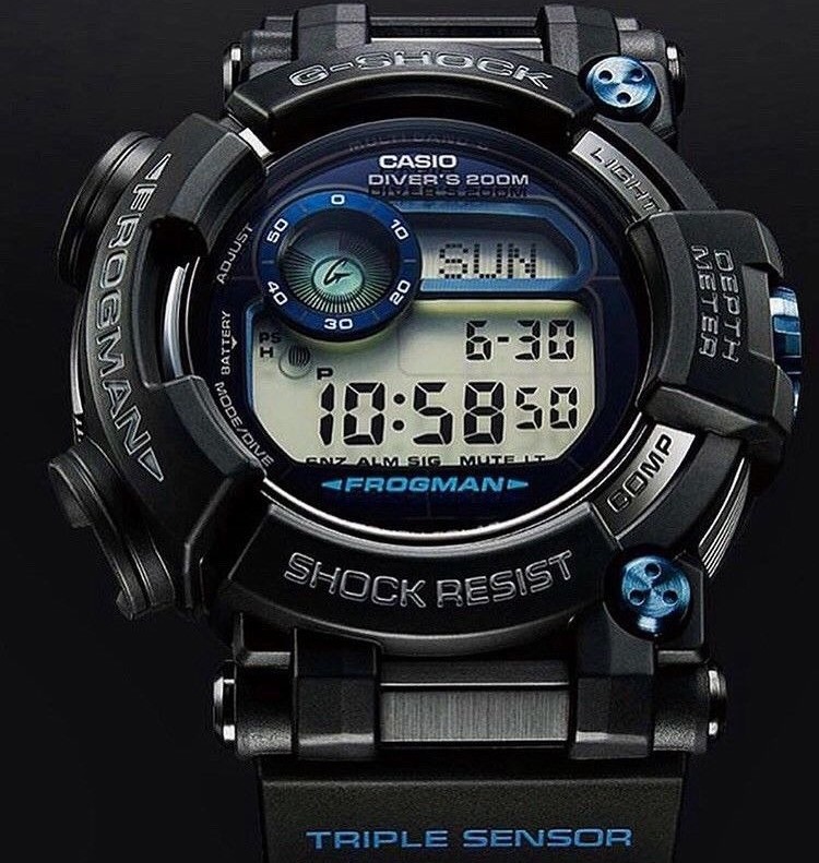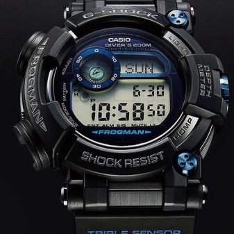 Die Eigenschaften dieser Chronometer werden durch sieben Indikatoren charakterisiert: elektrischer Widerstand, Stoßfestigkeit, Niedertemperaturbeständigkeit, Vibrationsbeständigkeit, Wasserbeständigkeit, Schwerkraftbeständigkeit und Steifigkeit. Seitdem wurden die Modelle dieser Serie in Hunderten von Variationen präsentiert, eine der letzten - Frogman Digitale Herrenuhr. Diese stoßfeste Uhr ist bis 200 Meter wasserdicht, verfügt über ein 53 mm Edelstahlgehäuse, einen Tauchtimer, eine funkgesteuerte Zeiteinstellung und Sonnenkollektoren.