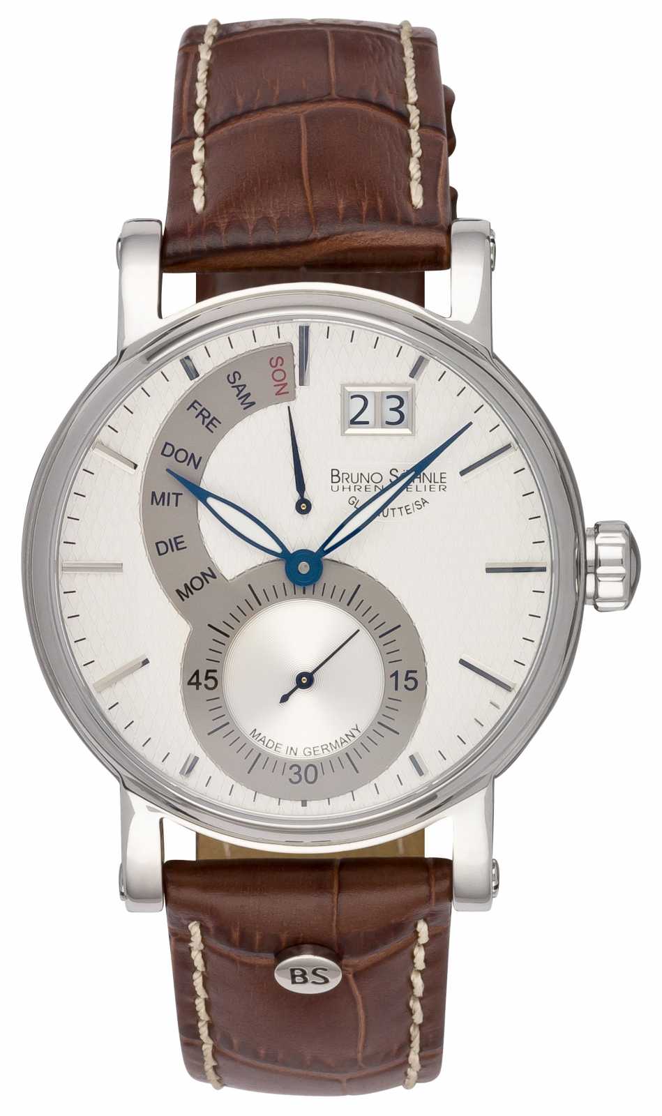 Bruno Sohnle - ein bekanntes deutsches Warenzeichen, unter dem hochpräzise Armband- und Taschenuhren mit Automatik- und Handaufzug hergestellt werden. Bei der Herstellung von Uhren verwendet der Hersteller selbst entwickelte Rotormechanismen, verschleiß- und stoßfeste Komponenten sowie Beschichtungen aus Weiß-, Gelb- und Roségold. Unter dem beeindruckenden Uhrensortiment dieser Marke sind vor allem die Modelle der Serien Brunello I und Brunello II bei Männern beliebt. Diese Modelle sind mit robusten Edelstahlgehäusen und fortschrittlichen Quarzwerken auf Basis der Ronda 6004 ausgestattet.