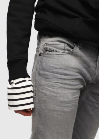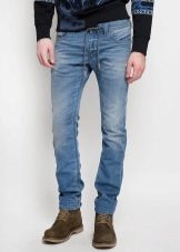 Im Kleiderschrank jedes Vertreters des stärkeren Geschlechts sollte sich mindestens eine Jeanshose dieser Farbe befinden, denn Accessoires und andere Kleidungsstücke dafür lassen sich ganz einfach aufheben. Jeans sollte im gleichen Ton gekauft werden, ohne mehrfarbige Nähte.