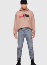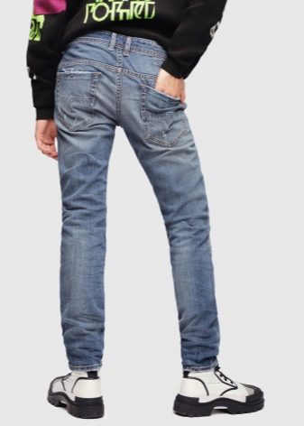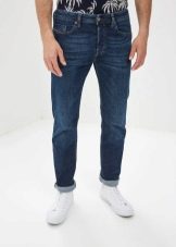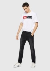Nicht viele Männer können sich rühmen, dass sie bei der Wahl einer Diesel-Denimhose schnell die richtige Größe für sich gefunden haben. Normalerweise sind Produkte viel länger als auf dem Etikett angegeben. Die Produkte dieser Marke haben in den meisten Fällen einen sehr breiten Gürtel. Daher ist es selbst bei einer Standardfigur unmöglich, eine Jeans ohne sorgfältige Passform aufzunehmen.