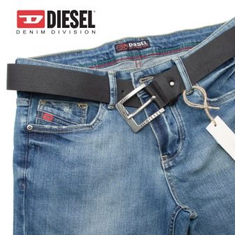 Eine echte Diesel-Jeans kann in vielerlei Hinsicht von einer Fälschung unterschieden werden. Typisch für diese Modelle ist zum Beispiel die Naht auf der Innenseite des Gürtels, die farblich an die Landesflagge erinnert. Die Naht verläuft entlang des Etiketts und ragt auf beiden Seiten gleich weit aus dem Etikett heraus.