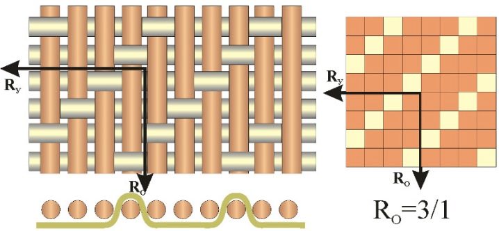 Der Stoff zeichnet sich durch eine Rechtsköperbindung aus, bei der die Narben von rechts nach links und von oben nach unten verlaufen. Wenn das Weben schlecht sichtbar ist, weist dies auf eine schlechte Qualität des Materials hin und es ist besser, kein daraus hergestelltes Produkt zu kaufen. Das Qualitätsmaterial dieser Marke ist ausschließlich Baumwolle, obwohl die Hersteller manchmal Elasthan hinzufügen.