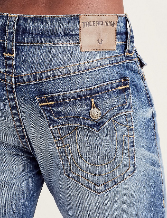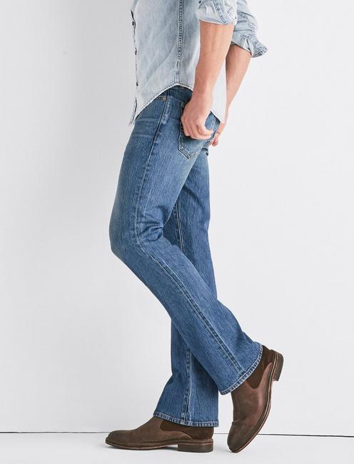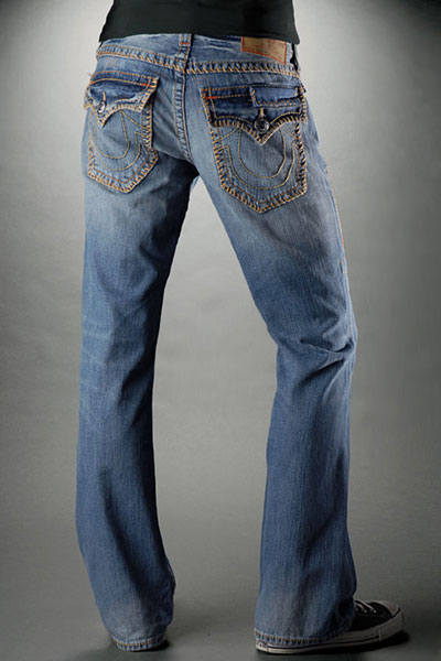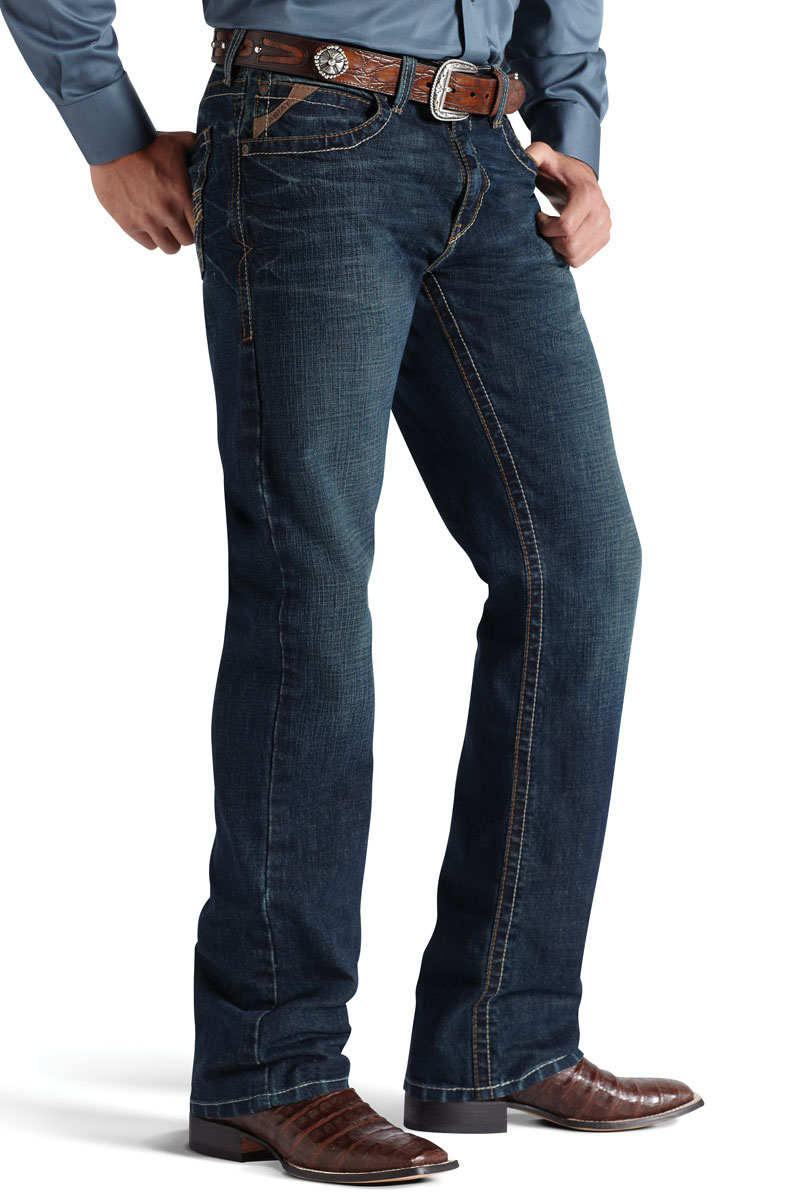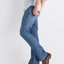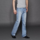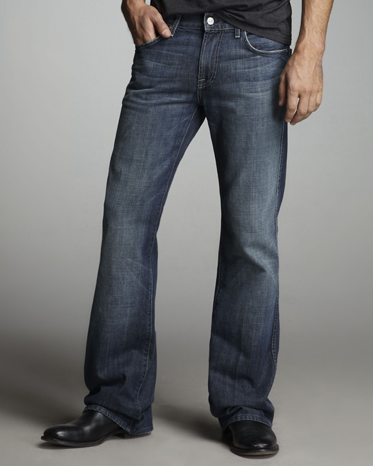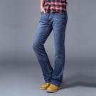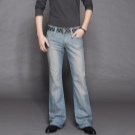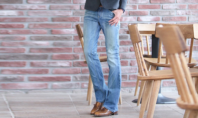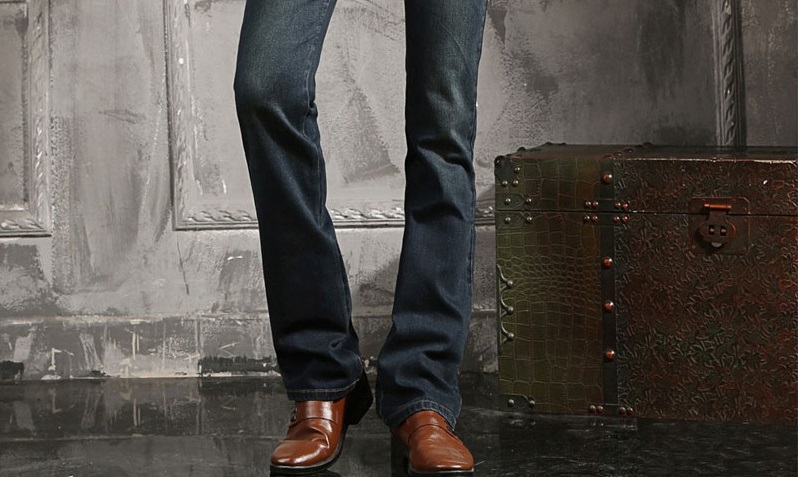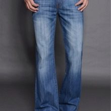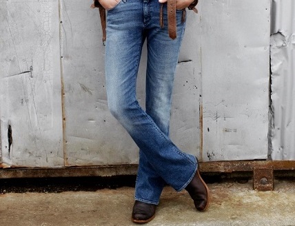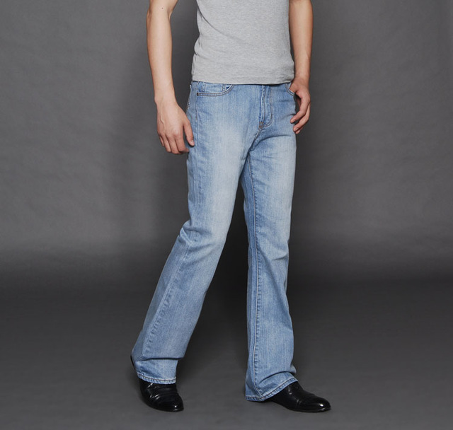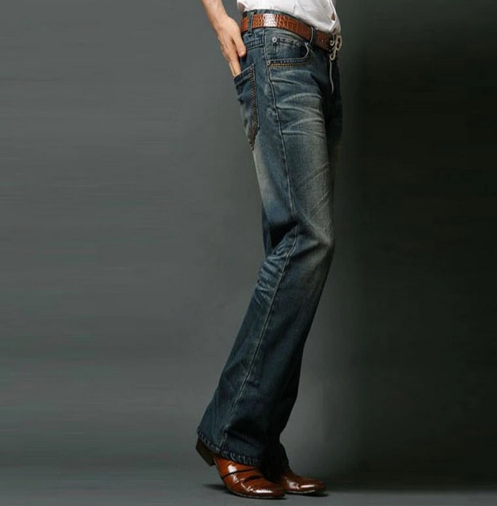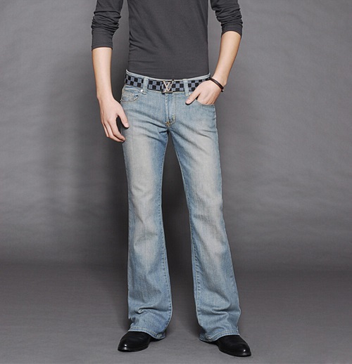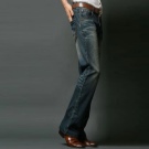 Ausgestellte Jeans für Herren in modernem Design ermöglichen eine recht intensive optische Korrektur der Körperproportionen.