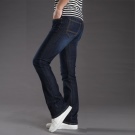 - Die mit ein paar zusätzlichen Pfunden im Taillenbereich. In diesem Fall müssen Sie ausgestellte Jeans aus einem dichten Stoff mit niedriger Passform und Gesäßtaschen so nah wie möglich an der Mittellinie des Schnitts wählen.