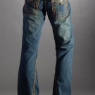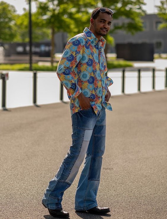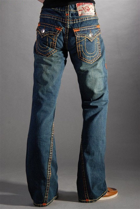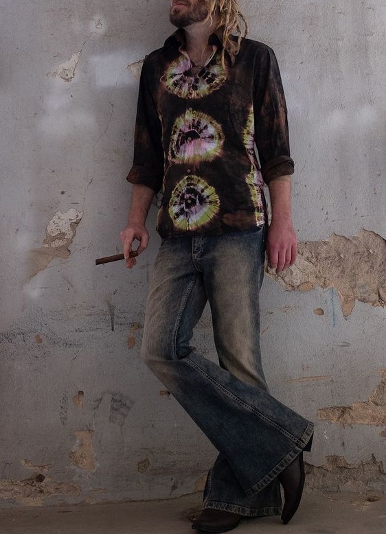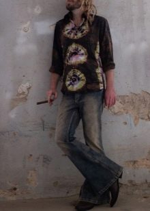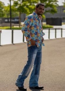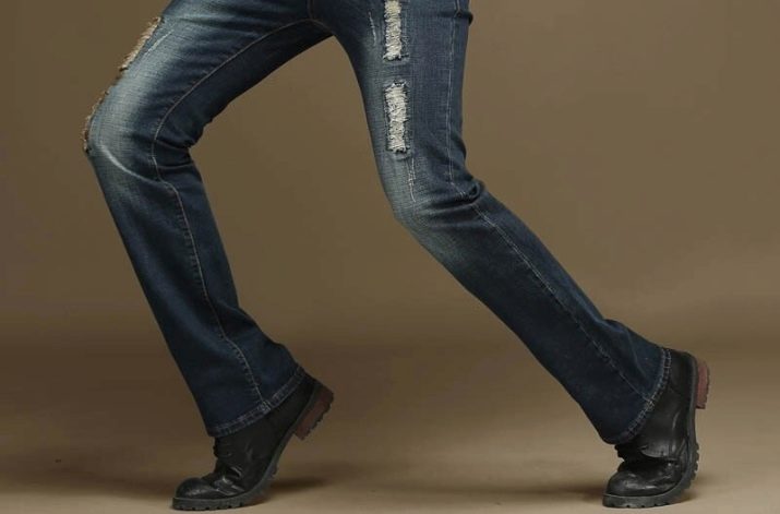 Beliebte ausgestellte Herrenjeans - ein stilvolles Garderobendetail, in dem verschiedene originelle Elemente und Details zu verschiedenen Zeiten aufgetaucht sind. Ursprünglich waren ausgestellte Hosen von der Hüfte aus verbreitert und konnten im unteren Teil den doppelten Durchmesser haben als am Beinansatz. In den 70er Jahren des XX Jahrhunderts galten sie als Unisex-Kleidung und waren im Sinne der "Blumenkinder" reich mit Stickereien verziert.