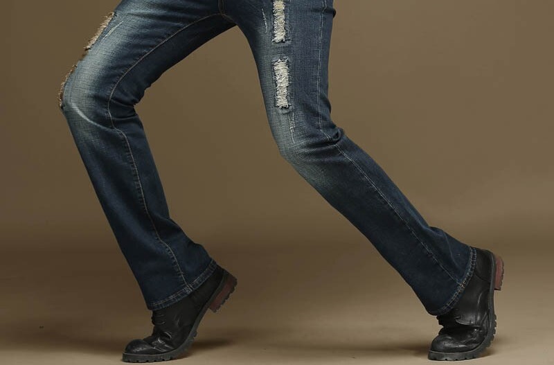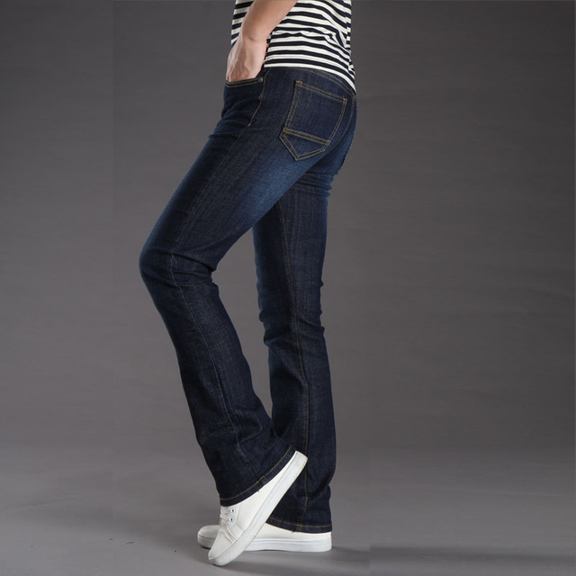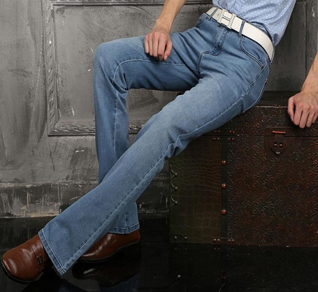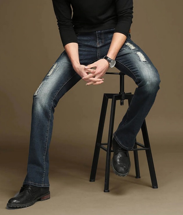 - Besitzer von kurzen Torso. Männer mit diesem Figurtyp können den Körper mit Hilfe von ausgestellten Jeans optisch länger machen.