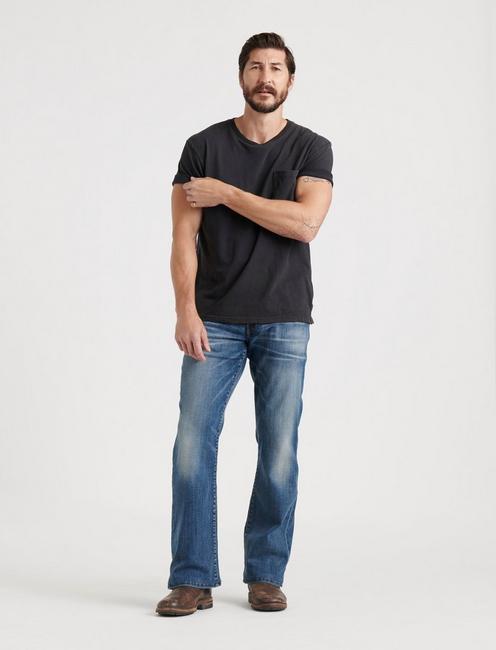 Moderne Schlagjeans für Herren haben einen Bootcut-Stil - darauf sollte bei der Auswahl eines solchen Kleidungsstücks geachtet werden. Sein Vorteil ist seine Vielseitigkeit. Hosen in diesem Schnitt sind informell genug, um im Alltag getragen zu werden. Moderat ausgestellt in einfarbigem Design passt gut in den Office-Dresscode oder ist im Urlaub eine gute Ergänzung zum Casual-Style. Solide Modelle in Schwarz lassen sich mit Parkas und Hoodies kombinieren.