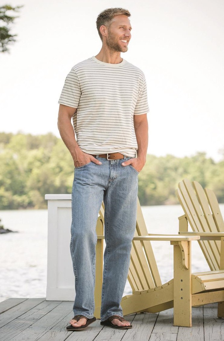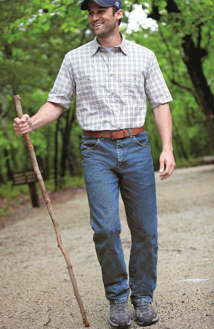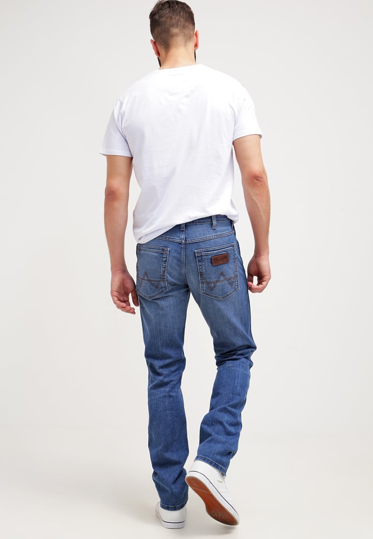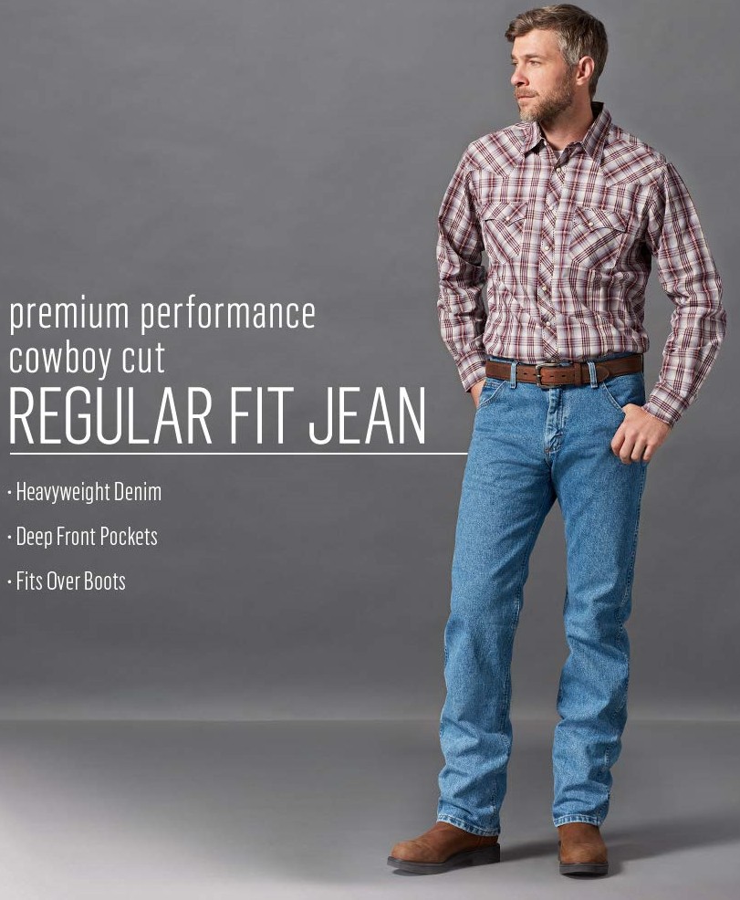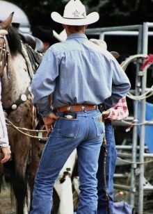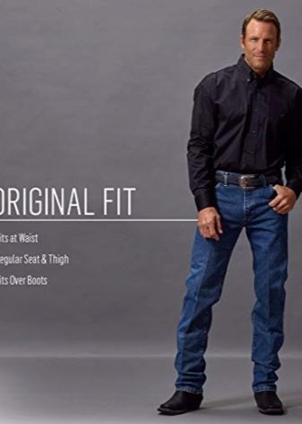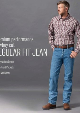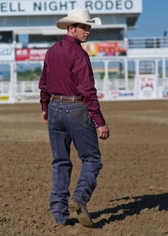 Original fit im Cowboy-Schnitt - ein Stilklassiker, der als offizielle Uniform aller Rodeo-Teilnehmer gilt. Die Hose ist gerade geschnitten, der Boden ist aber eher weit ausgestellt, so dass Cowboystiefel darunter versteckt werden können. Die Passform der Hose ist hoch, der Gürtel sitzt eng um die Taille, damit das Shirt nicht darunter herausrutscht. Das Vorhandensein mehrerer Taschen und geglätteter Metallnieten machen das Modell bequem und praktisch.