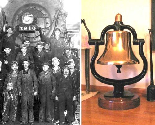 Die Eisenbahner liebten Hudsons Kleidung so sehr, dass sie ihm eine echte Eisenbahnglocke als Symbol für Erfolg und Wertschätzung schenkten.