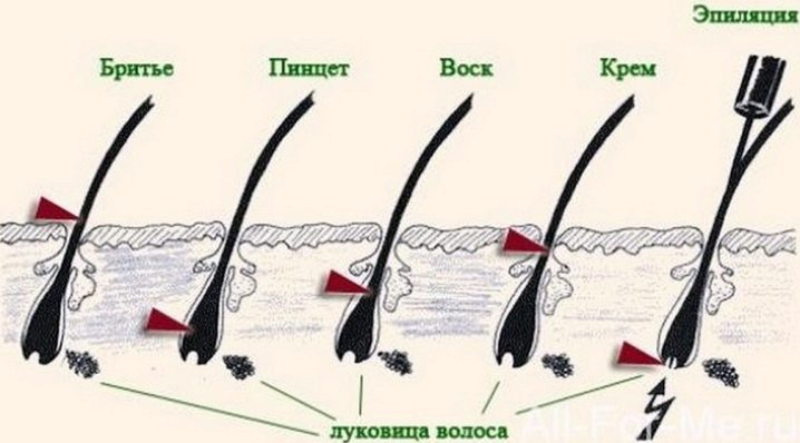- Rasieren. Die einfachste und am wenigsten wirksame Methode. Der Rasierer entfernt die Vegetation für sehr kurze Zeit und wächst dann genauso hart und dicht nach. Darüber hinaus verursacht die Rasur häufig Reizungen, Hautausschläge und Juckreiz. Dies ist sehr unangenehm.