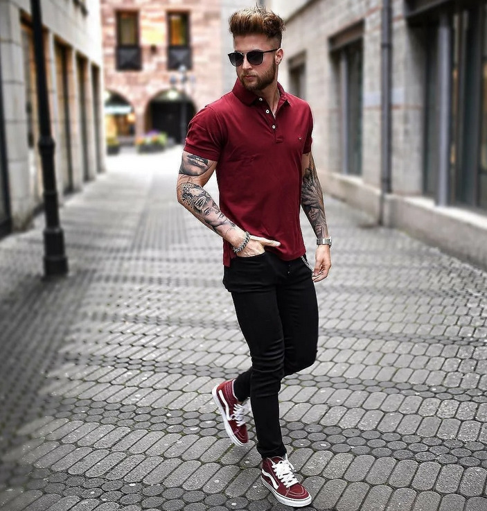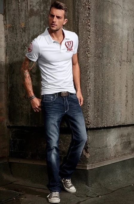 Es folgt aus den Merkmalen des allgemeinen Stils und des Rests der Dinge. Wenn ein Mann beispielsweise sportlich oder lässig gekleidet ist, muss das Oberteil nicht in eine Jeans gesteckt werden, auch wenn im Bild eine Jacke verwendet wird. Wenn ein Vertreter des stärkeren Geschlechts lieber strenge Jeans trägt, kann das T-Shirt draußen getragen oder hineingesteckt werden. Polo hingegen kann nur eingesteckt getragen werden, sonst sieht man lächerlich aus.
