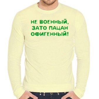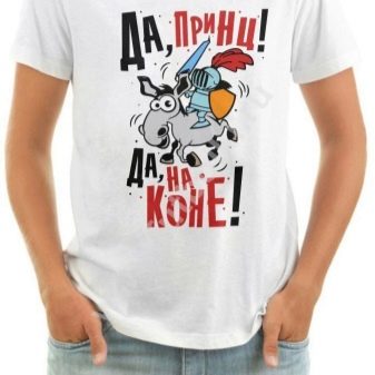 Nicht alle Modelle sind für eine bestimmte Person geeignet. Sie müssen Ihre Option unter Berücksichtigung mehrerer Nuancen auswählen... Zum Beispiel muss das Modell für die Charakter- und Alterskategorie geeignet sein. Ein T-Shirt mit sexy Spruch eignet sich für junge Kerle, aber nicht für reife und ältere Männer. Auf ihnen wird ein solches Kleidungsstück zumindest lächerlich aussehen.