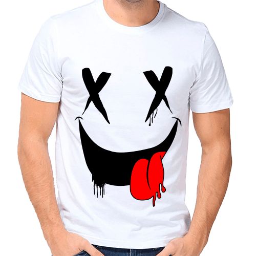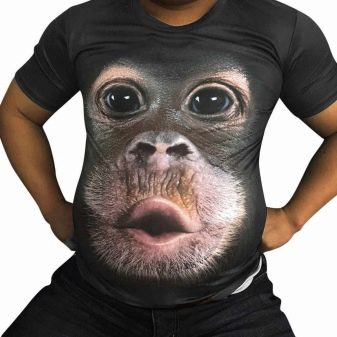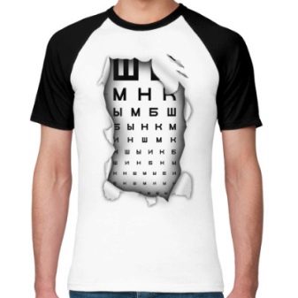 Interessante und lustige Bilder können sich in der Mitte des T-Shirts, entlang der gesamten Fläche des Vorderteils sowie auf der Rückseite befinden. Es können Karikaturen oder Cartoons von berühmten und Medienpersönlichkeiten, Comicfiguren, lustige Katzen, Affen, Hunde, Bären, Eulen, Schädel, Skelette, Meme sein. Eine Zeichnung in Form einer Tabelle für einen Sehtest sieht auf einem T-Shirt außergewöhnlich aus. Unter den Modellen gibt es lustige 3D-gedruckte T-Shirts.