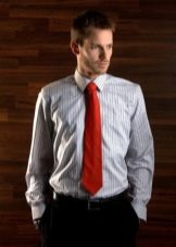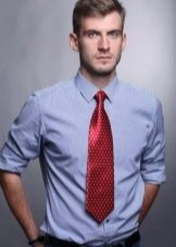 Farbige Shirts lassen sich auch mit bunten Accessoires kombinieren. Das blaue Hemd ermöglicht es Ihnen, Scharlachtöne so rein und satt wie möglich zu verwenden. Ein rotes Hemd sollte auch mit unifarbenen Krawatten kombiniert werden, die sich 1-2 Töne vom Hintergrund unterscheiden.Natürlich können solche Kombinationen nicht als klassisch bezeichnet werden, aber sie passen in eine informelle Garderobe.