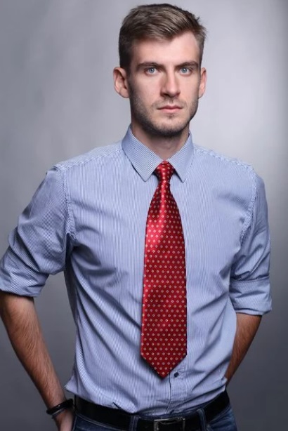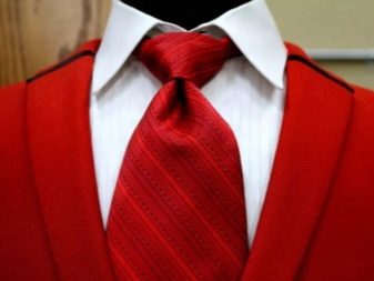 Ein auffälliges Accessoire, eine Krawatte, bezieht sich auf die kleinen, aber offensichtlichen Details, die dazu beitragen, den richtigen Eindruck einer Person zu bilden. Männer, die Rot wählen, um ihre Garderobe aufzupeppen, gelten als natürliche Führer., werden als ernstere, respektablere Person wahrgenommen. Alle feurigen Schattierungen konzentrieren sich auf das Bild, ermöglichen es Ihnen, die Bedeutung in der Gesellschaft zu betonen, sich vom Hintergrund anderer Menschen abzuheben.