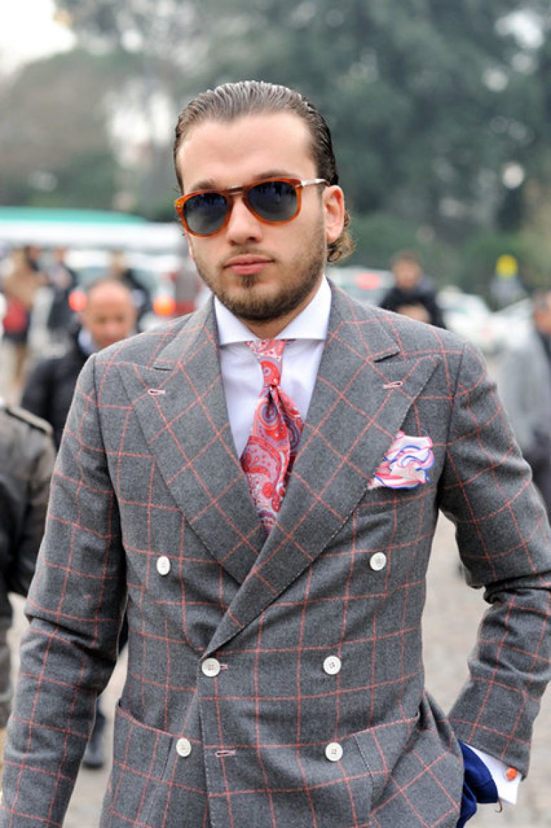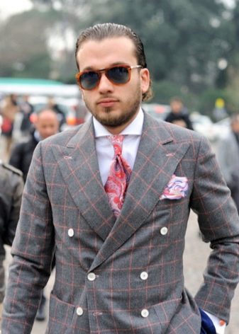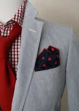 - Zelle. Das rote "Schachbrett" sieht ziemlich einprägsam aus, passt gut in das Bild eines Studenten oder Absolventen einer Hochschule oder Universität. Bei einem älteren Mann ist ein solches Element nur als Detail des Bildes eines Hipsters zulässig.