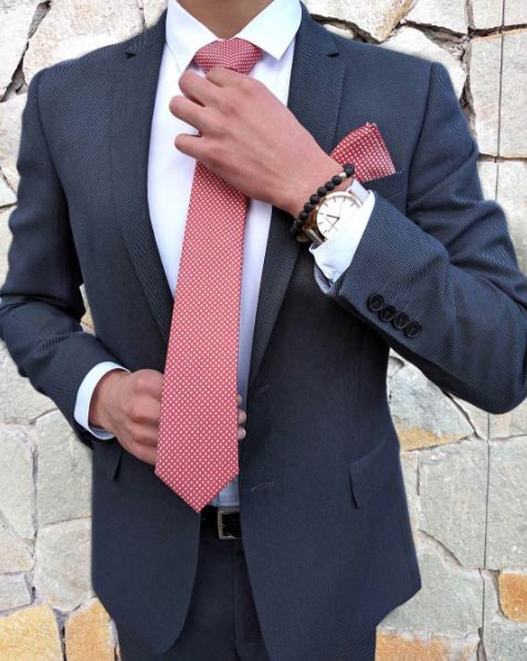 - Ein klassisches Beispiel dafür, dass eine rote Krawatte auch ganz dezent und gleichzeitig ein leuchtendes Detail sein kann. Ein stylischer grauer Blazer wird hier mit einem blau-weiß karierten Hemd ergänzt.Die Krawatte selbst trägt dazu bei, das Image eines stilvollen jungen Mannes zu schaffen, eine solche Kombination eignet sich für Studenten und Freiberufler.