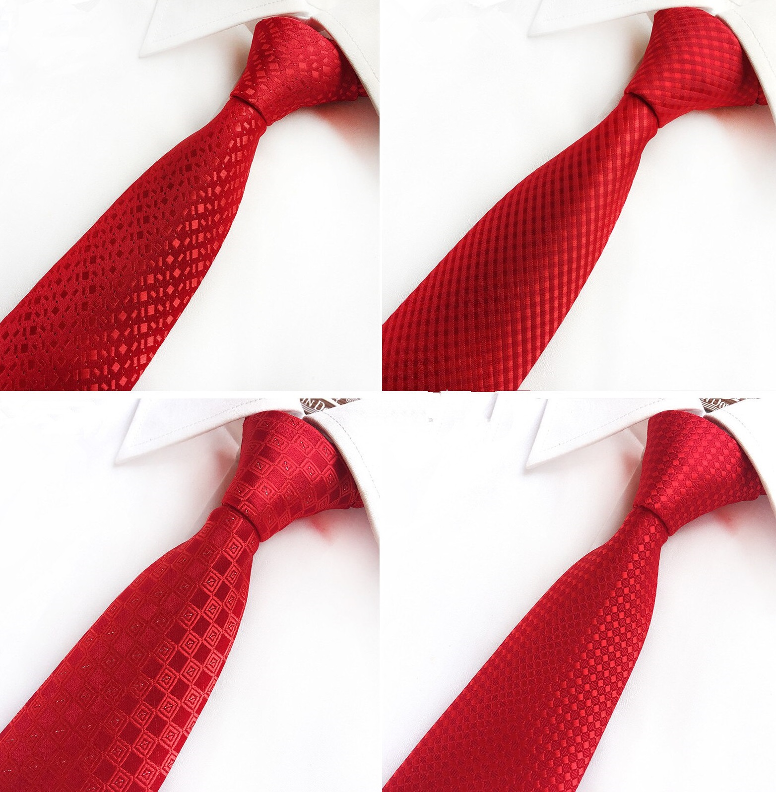 Einfarbige Accessoires gelten als traditionell. Wenn es jedoch ein informelles Bild erzeugt, können Sie rote Krawatten mit einem Ornament verwenden. Hier sind nur einige beliebte Optionen.