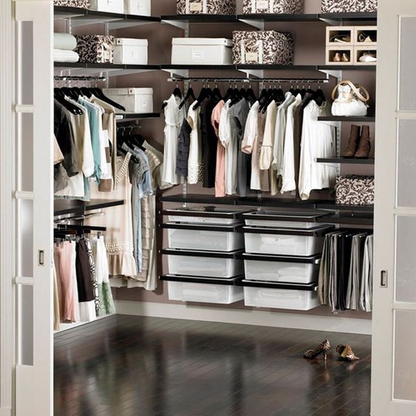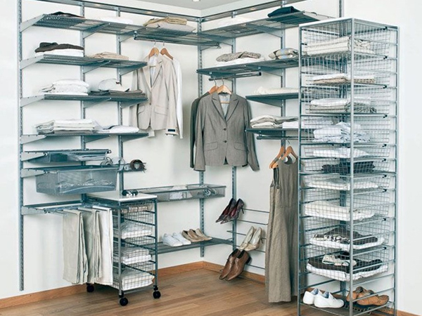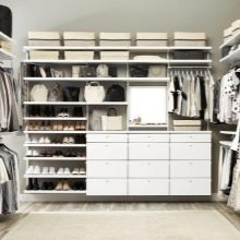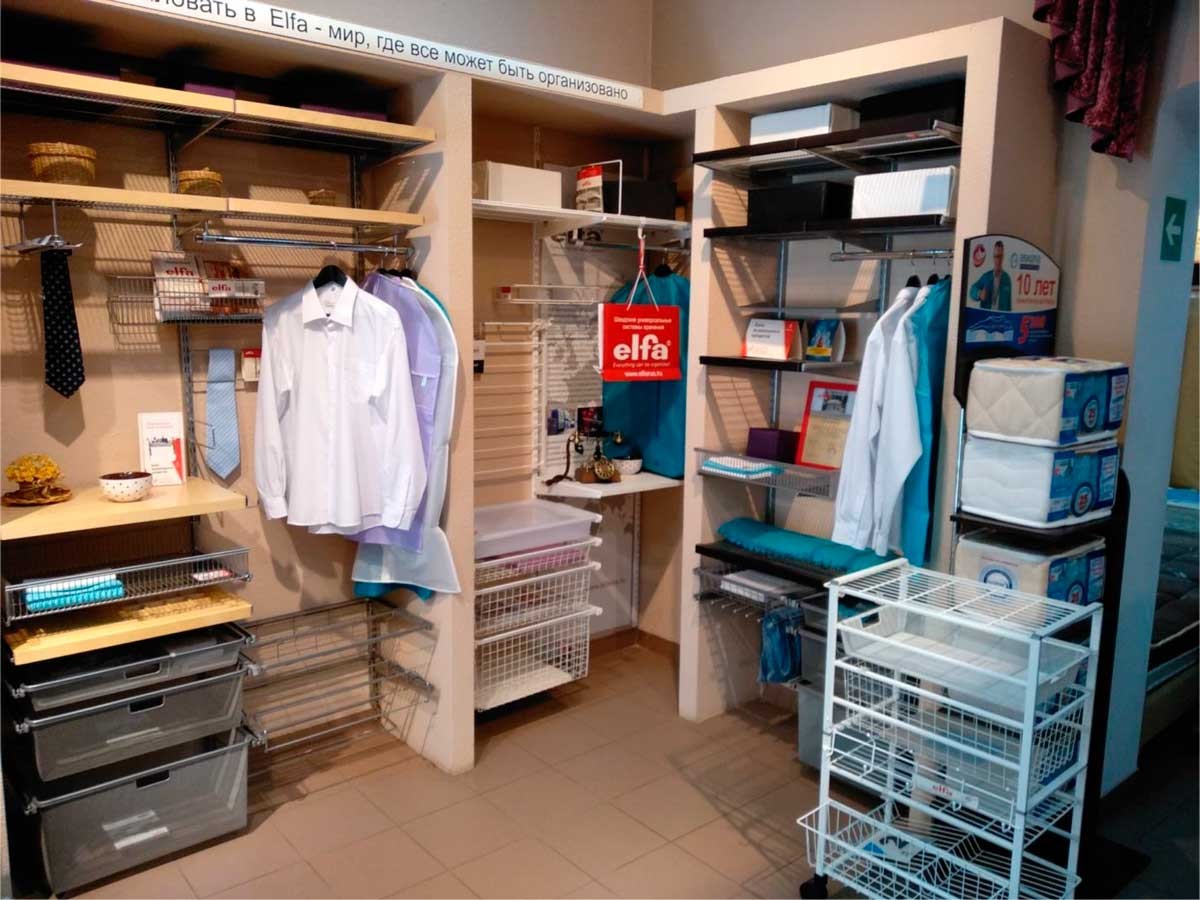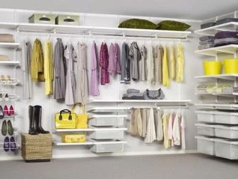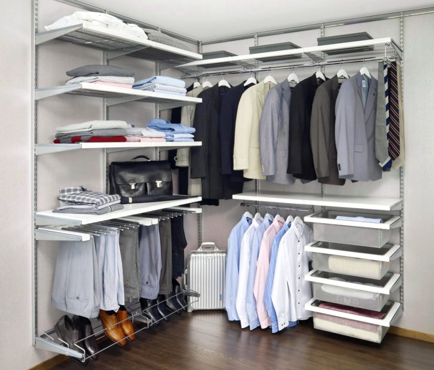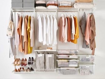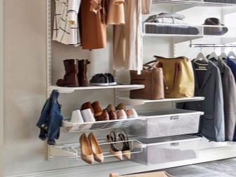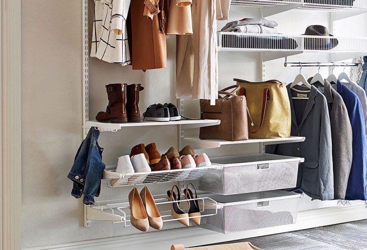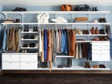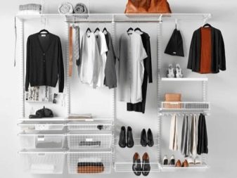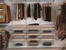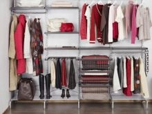 Ein Merkmal von Elfa-Geräten ist, dass Aufbewahrungssysteme werden für Dinge unterschiedlicher Größe und Verwendung bereitgestellt... Das heißt, zum bequemen Platzieren von Oberbekleidung gibt es eine spezielle starke Stange, während Krawatten an einer Halterung angebracht werden können und Unterwäsche bequem in einer geräumigen Schublade verstaut werden kann.