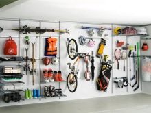 Speicherdienstprogramm sind ideal zur Aufnahme verschiedener Geräte und Werkzeuge... Daher wird es oft bei der Einrichtung von Garagen, verschiedenen Hauswirtschaftsräumen, Werkstätten, Räumen mit Sport-, Garten- oder anderen Geräten gewählt.