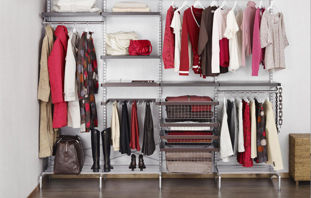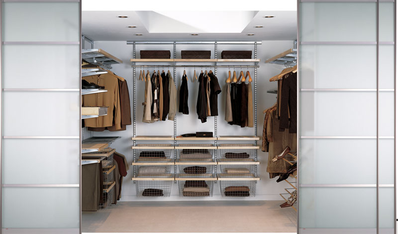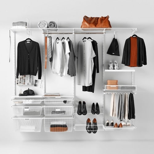 Um ein Ankleidezimmer oder ein anderes Aufbewahrungssystem zu bilden, bietet das schwedische Unternehmen Elfa die folgenden Elemente an: