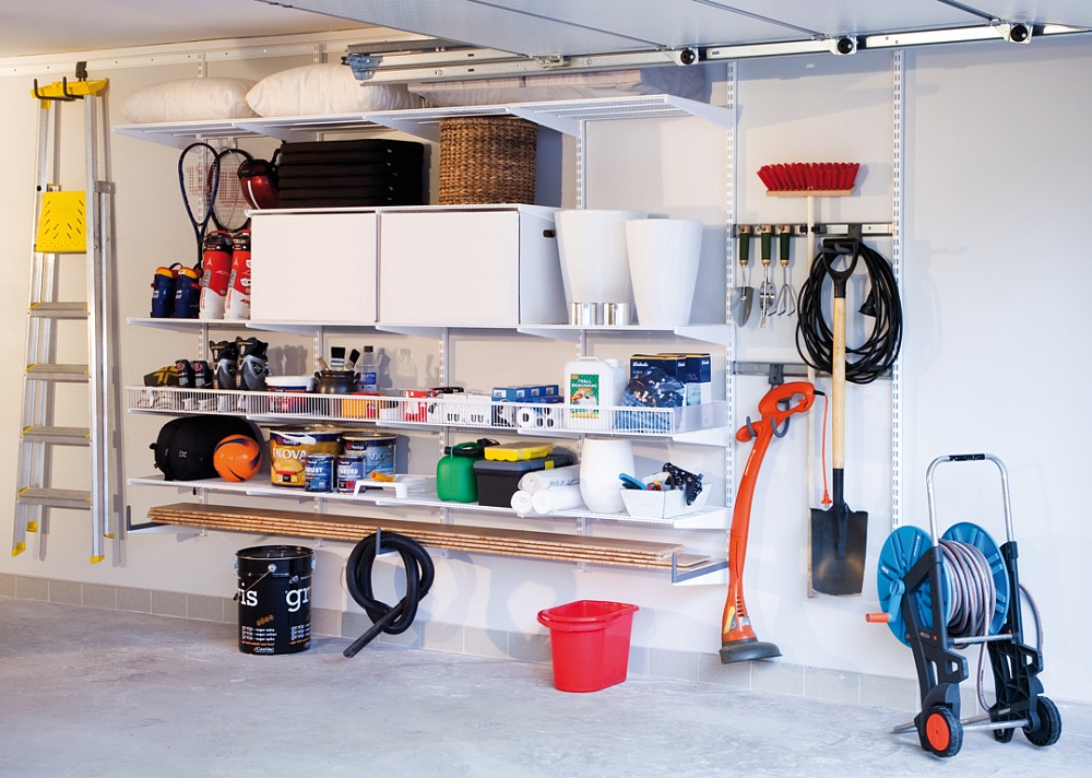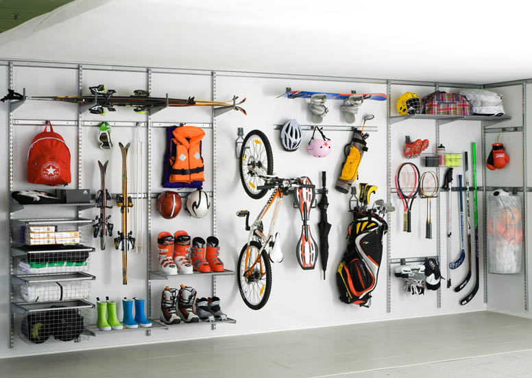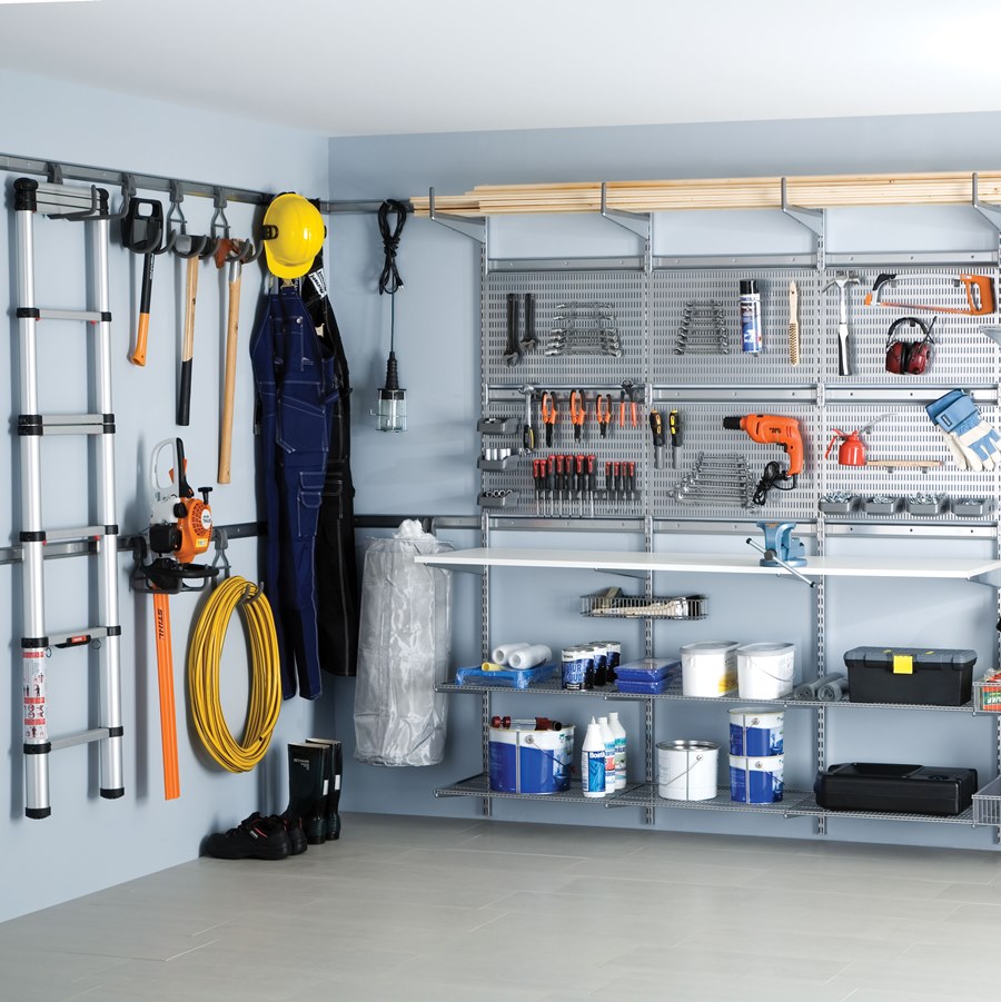 Auf Lochblechen kann jedes Werkzeug bequem positioniert werden.Dies bietet die Möglichkeit, die erforderliche Ausrüstung ständig zu sehen und keine Zeit damit zu verschwenden, in verschiedenen Kisten oder Kisten danach zu suchen. Darüber hinaus verfügen die Utility-Aufbewahrungssysteme von Elfa über spezielle Halterungen für Fahrräder, Autoreifen und mehr.