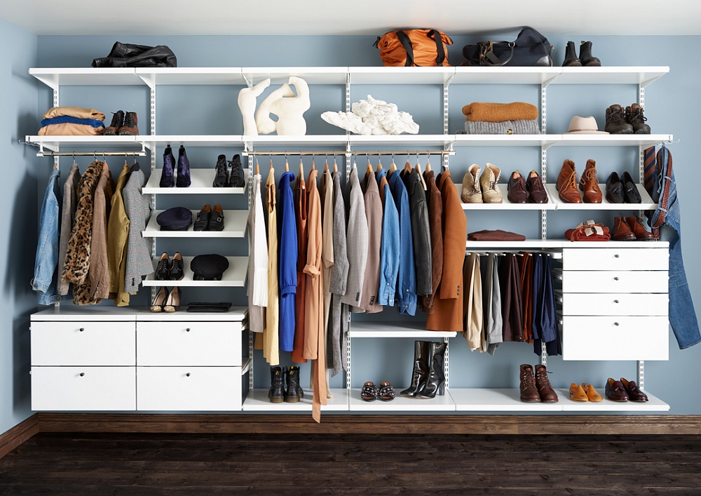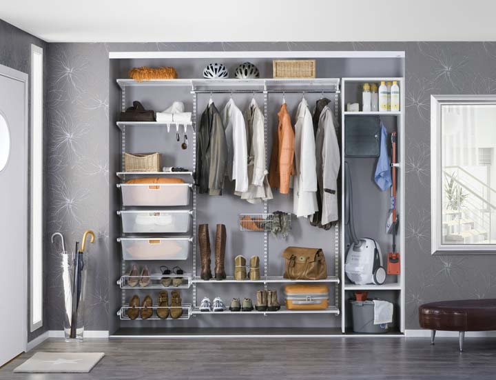 Mit den Elfa-Aufbewahrungssystemen können Sie jedes Element an die Bedürfnisse der Eigentümer der Räumlichkeiten anpassen.Die Höhe der äußeren Kleiderstange oder der Wäscheablage kann jederzeit verändert werden. Es ist möglich, etwas von den Speicherelementen zu entfernen oder umgekehrt hinzuzufügen und zu ergänzen. In diesem Fall ist es nicht erforderlich, Spezialisten zu rufen oder ein Spezialwerkzeug zu verwenden. Designänderungen gehen sehr schnell – Lagersystemelemente sind so konzipiert, dass sie sich problemlos miteinander kombinieren lassen.