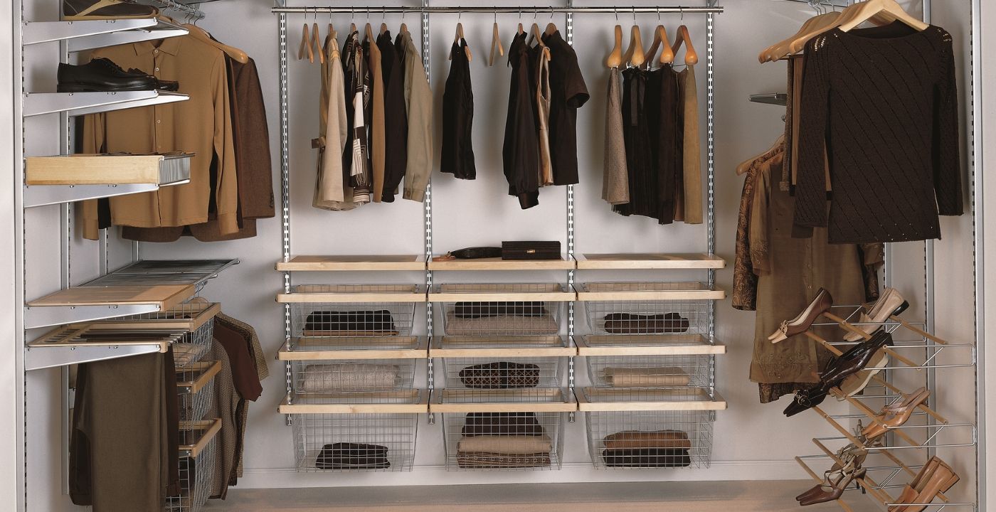 Bei der Verwendung von Elfa Garderobensystemen ist jeder Artikel an seinem Platz und es wird einfach sein, Ordnung im Kleiderschrank zu halten.
