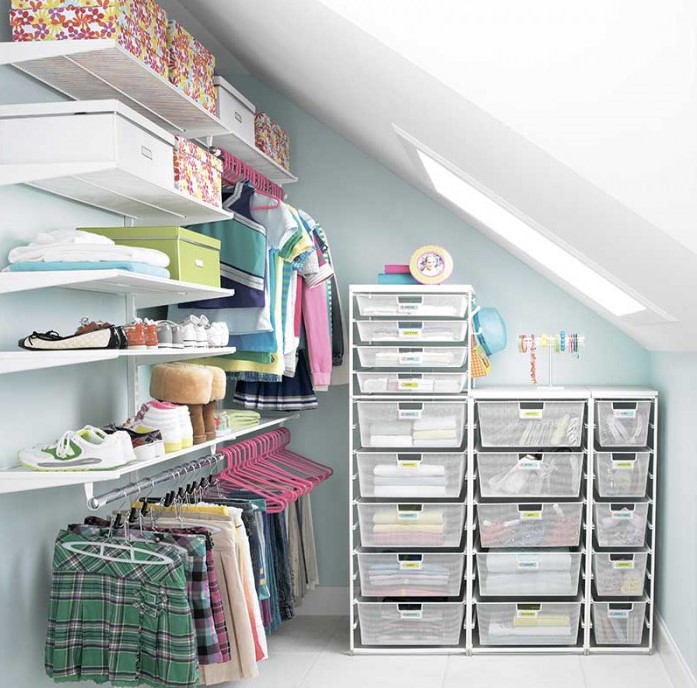 Auch Nischen im Raum bietet Elfa mit praktischen Aufbewahrungssystemen an. Dies können modifizierte Kleiderschränke oder aktualisierte Kleiderschränke sein.
