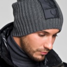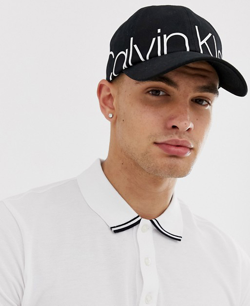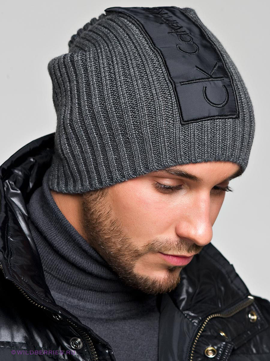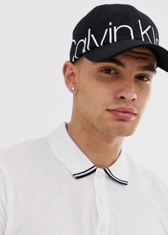 - Calvin Klein bieten nicht nur lakonische Strickmützen mit Logo an, sondern auch Mützen mit Visor im Jockey-Style. Das Farbschema ist dunkel.