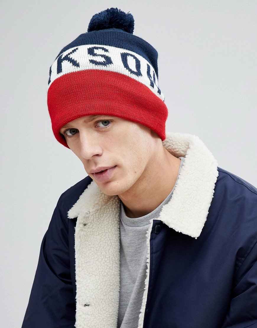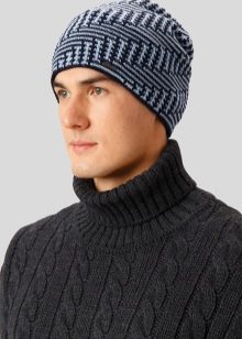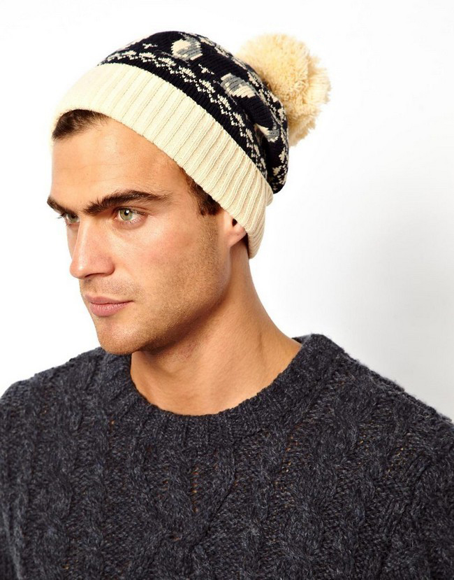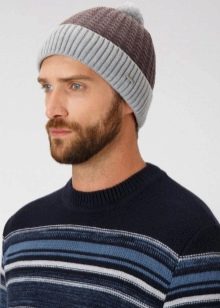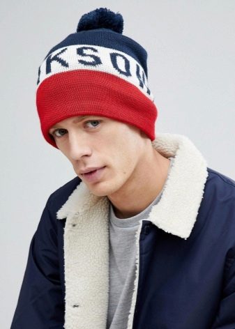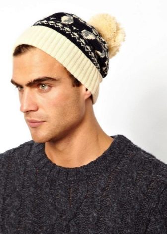 - Mit Pompons. Dies ist eine Jugendoption, die reife Männer nicht wählen sollten. Oft ergänzt durch ein originelles Rautenmuster, meist im skandinavischen Stil. Der Pompon kann aus Fell oder Wolle sein.