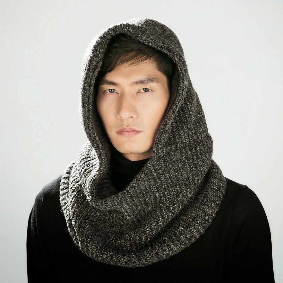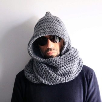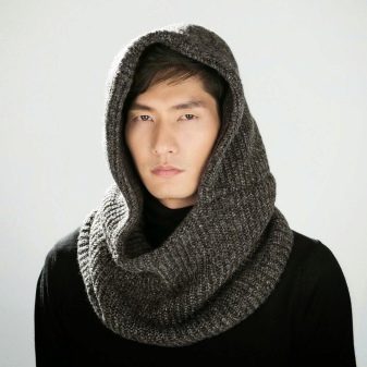 - Kapuze. Dieser Stil ist auch nur für junge Fashionistas geeignet, er sieht am extravagantesten und stilvollsten aus.Stricken kann variiert werden - schräg, gestreift, Zickzack. Passt gut zum lässigen Style.