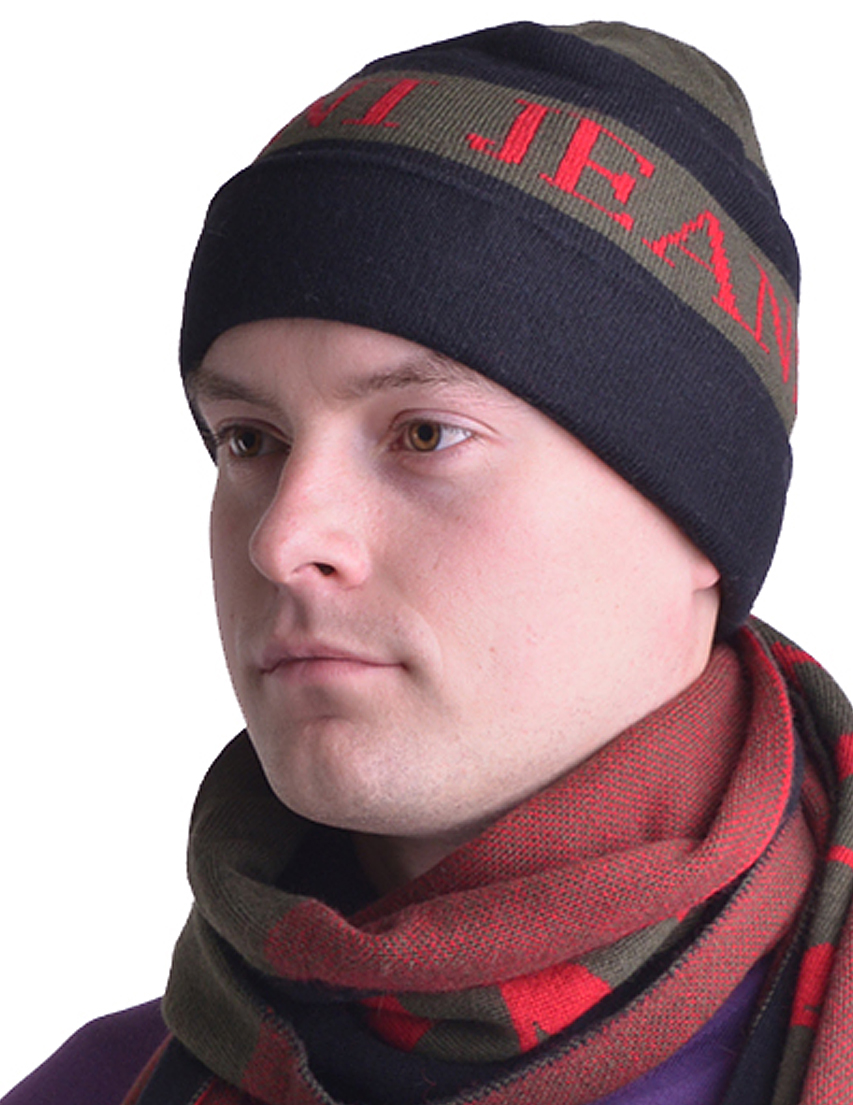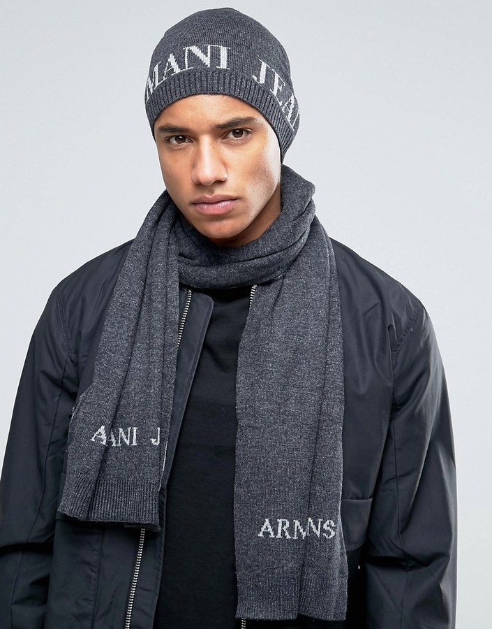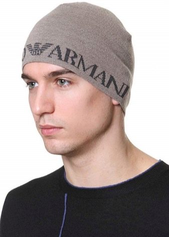 - Armani-Jeans schlägt vor, sich dem lakonischen Design zuzuwenden. In der Kollektion finden Sie gestrickte Mützen in Blau, Grau und Bunt-Melange. Modelle mit dem Markenlogo im sportlichen Stil sind sehr beliebt.
