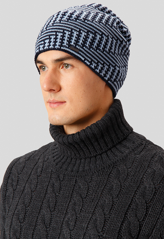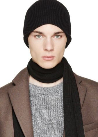 - Strickmütze. Nah am Kopf, wiederholt seine Form, einfach, mit unaufdringlichem Dekor.
