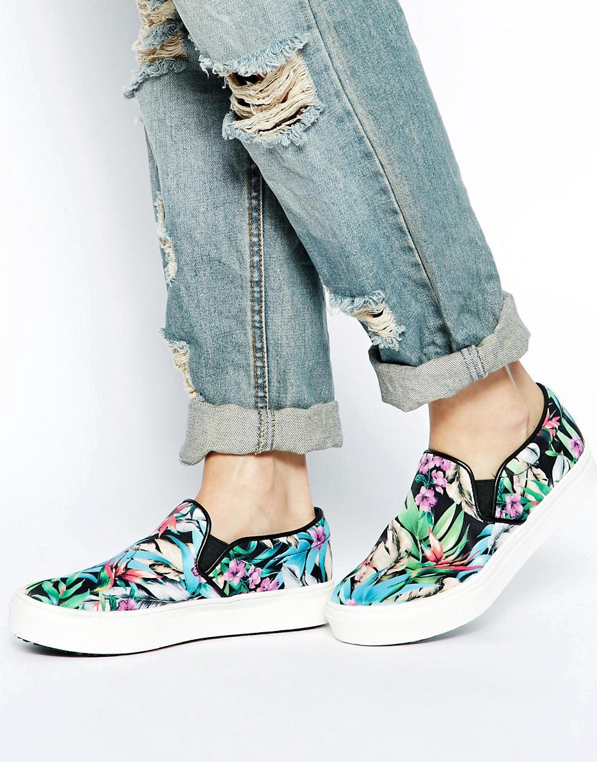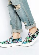 Eine andere Firma - Adidas - bietet helle Modelle mit Ornamenten. Dieses Unternehmen stellt Slip-On-Sneaker mit Gummisohlen, Canvas- oder Mesh-Obermaterial her. Im kommenden Sommer wird eine Mode für leuchtende, satte Farben erwartet, außerdem experimentieren die Hersteller ständig mit Mustern und nutzen ihre Vielfalt: von floralen Ornamenten bis hin zu animalischen Drucken.