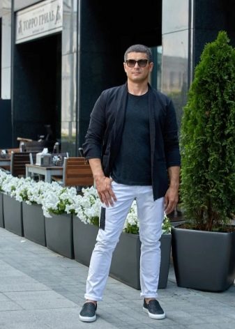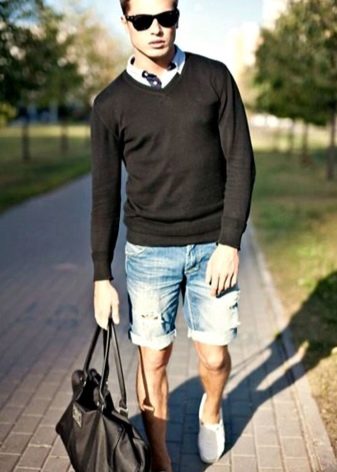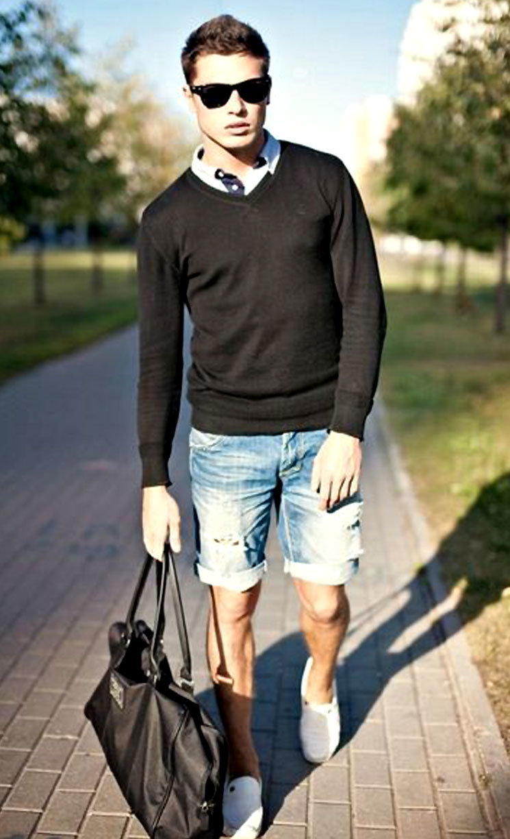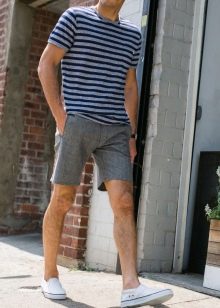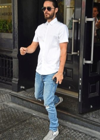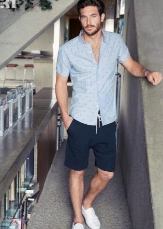 Während der intensiven Sommerhitze können Sie weiße Herren-Sneaker kombinieren mit knielangen Shorts... Ein T-Shirt oder Hemd mit einem hellen Muster ergänzt diesen Look.