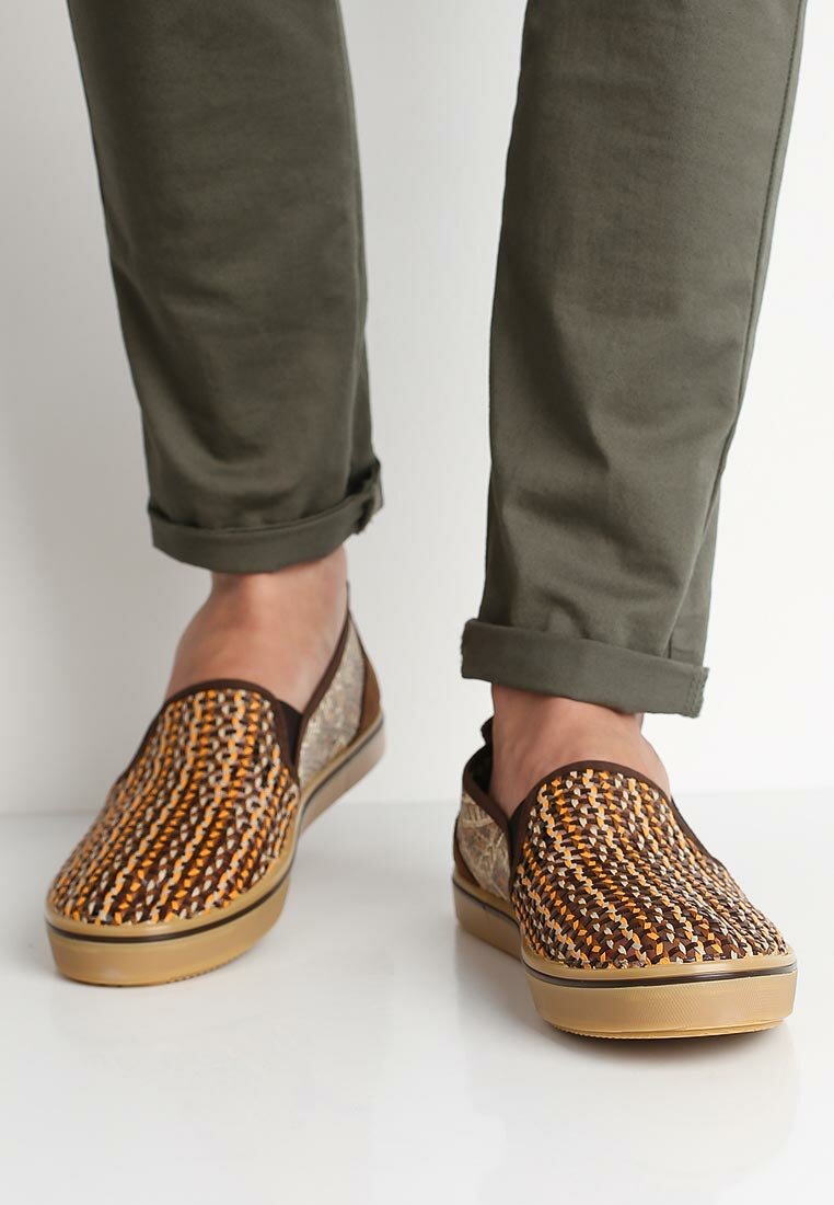 Herren Sneaker ohne Schnürsenkel heißen Slipper... Sie haben Stretcheinsätze an den Seiten und in der Mitte für eine bequeme Passform. Dieser Schuhtyp besteht aus zwei Teilen: Canvas- und Gummisohlen. Slip-On Sneakers wurden Ende der 70er Jahre des letzten Jahrhunderts von Paul van Doren als leichter Surfschuh entwickelt. Sie sehen gut zu Shorts und Jeans sowie zu allen Skinny Pants aus.