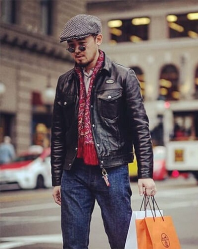 - Antriebskappe aus Tweed mit Fischgrätmuster kann mit einer Lederjacke bis zur Taille, weiten Bluejeans und einem Businesshemd ergänzt werden. Dieser entspannte urbane Look lässt sich leicht mit mutigen Details wie einem lockeren roten Schalldämpfer oder einer runden Sonnenbrille an der Nasenspitze ergänzen.