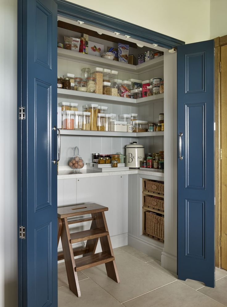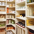 Eine solche Speisekammer kann von der ganzen Familie genutzt werden, Hauptsache ist, anzugeben, wo sich wessen Regale befinden.
