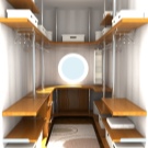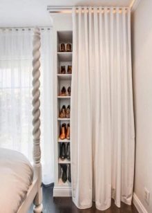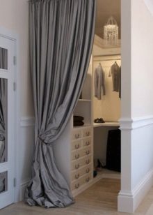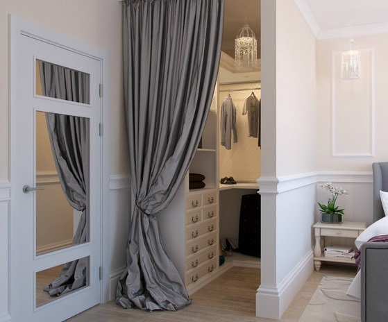 - Manchmal erlaubt die Aufteilung der Wohnung, dass sich ein solcher Raum in einer Ecke befindet, es reicht aus, dort nur Türen oder ein Schiebesystem zu installieren.