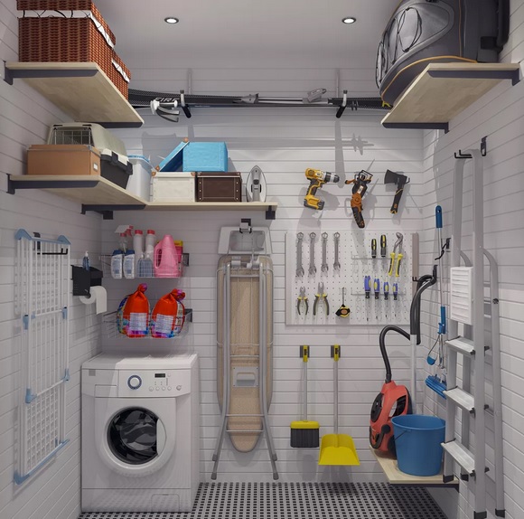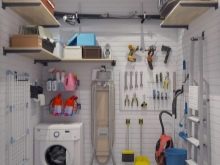 Hauswäsche hilft jeder Hausfrau, pünktlich zu waschen, schmutzige Wäsche problemlos zu sortieren und saubere aufzuräumen. Hier können Sie eine Waschmaschine installieren, Regale und Schränke, ein Bügelbrett und einen Korb für schmutzige Wäsche aufstellen. Natürlich ist es notwendig, über das Wasserversorgungssystem nachzudenken. Eine Speisekammer ist eine großartige Option für jeden Handwerker, egal was er genau macht. Der Tischler stellt dort seine Maschine und Werkzeuge auf, stellt Regale für Zuschnitte her. Der Künstler stellt eine Staffelei auf und findet einen Platz für Schubladen mit Farben und Pinseln.