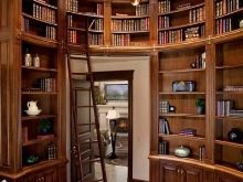 - Bei der Einrichtung einer Bibliothek oder eines Arbeitszimmers ist es besser, Tapeten und abgehängten Decken den Vorzug zu geben und ein Laminat auf den Boden zu legen.