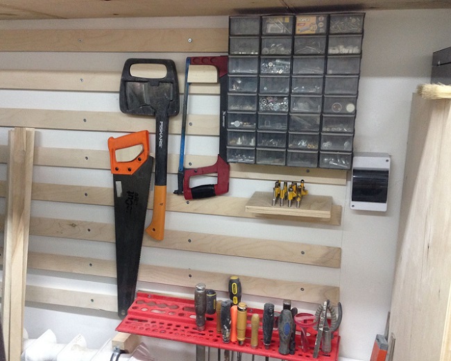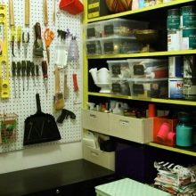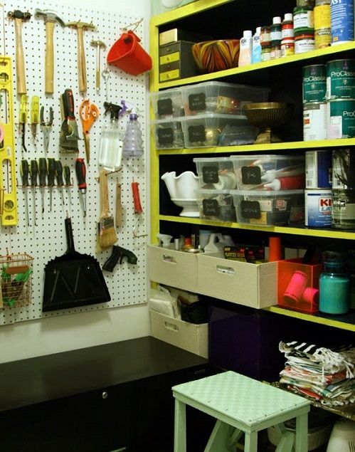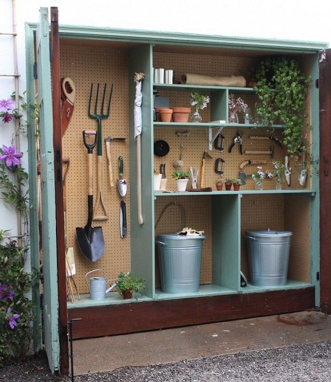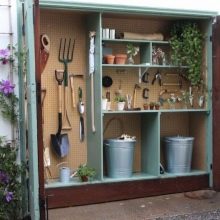 - Wenn dies ein Lager für Gartengeräte oder Werkzeuge ist, können Sie einfach die Wände streichen sowie Regale und Schränke zur Aufbewahrung kleiner Werkzeuge aufstellen.