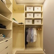 In alten Wohnungen ("Stalinkas" und "Chrushchevs") waren oft Vorratskammern vorhanden, deren Volumen ziemlich beeindruckend war. Es war durchaus möglich, dort die notwendigen Werkzeuge und alle Arten von Gurken zu platzieren und sogar eine Umkleidekabine auszustatten. Es gibt auch kleine Vorratskammern, die sich in der Küche oder im Flur befinden und auch nach Belieben ausgestattet werden können.